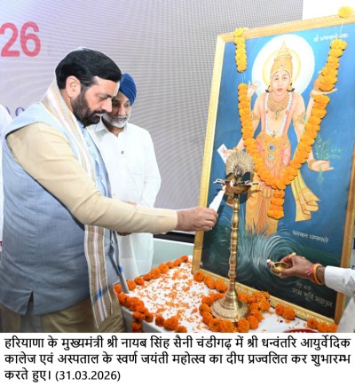 चंडीगढ़, 31 मार्च — हरियाणा के मुख्यमंत्री श्री नायब सिंह सैनी ने चंडीगढ़ में आयोजित श्री धन्वंतरि आयुर्वेदिक कॉलेज एवं अस्पताल के स्वर्ण जयंती समारोह को संबोधित करते हुए कहा कि आधुनिक जीवनशैली से उत्पन्न तनाव, मधुमेह, उच्च रक्तचाप और अन्य जीवनशैली संबंधी रोगों के समाधान में आयुर्वेद एक प्रभावी और टिकाऊ विकल्प प्रदान करता है। आयुर्वेद में शारीरिक स्वास्थ्य के साथ-साथ मानसिक और आध्यात्मिक संतुलन पर भी बल दिया जाता है।