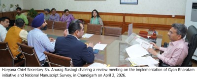 चंडीगढ़, 02 अप्रैल-हरियाणा के मुख्य सचिव श्री अनुराग रस्तोगी ने ‘ज्ञान भारतम’ पहल के कार्यान्वयन और राष्ट्रीय पांडुलिपि सर्वेक्षण के काम में तेजी लाने के निर्देश दिए हैं। मुख्य सचिव आज यहां उपायुक्तों, विश्वविद्यालयों के रजिस्ट्रारों और वरिष्ठ अधिकारियों के साथ बैठक कर ‘ज्ञान भारतम’ पहल के कार्यान्वयन और राष्ट्रीय पांडुलिपि सर्वेक्षण की समीक्षा कर रहे थे।