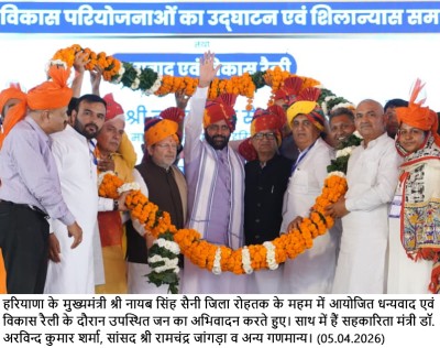 मुख्यमंत्री श्री नायब सिंह सैनी रविवार को महम में आयोजित धन्यवाद एवं विकास रैली को संबोधित कर रहे थे। इस दौरान मुख्यमंत्री ने 202 करोड़ 77 लाख रुपये लागत की विकास परियोजनाओं के उद्घाटन एवं शिलान्यास किए हैं। मुख्यमंत्री ने हलके के विकास के लिए 10 करोड़ रुपये देने की भी घोषणा की, साथ ही रैली संयोजक एवं राज्यसभा सांसद श्री रामचंद्र जांगड़ा द्वारा रखे गए मांग पत्र की सभी मांगों का अवलोकन करवाने उपरांत लागू करवाने का आश्वासन भी दिया।