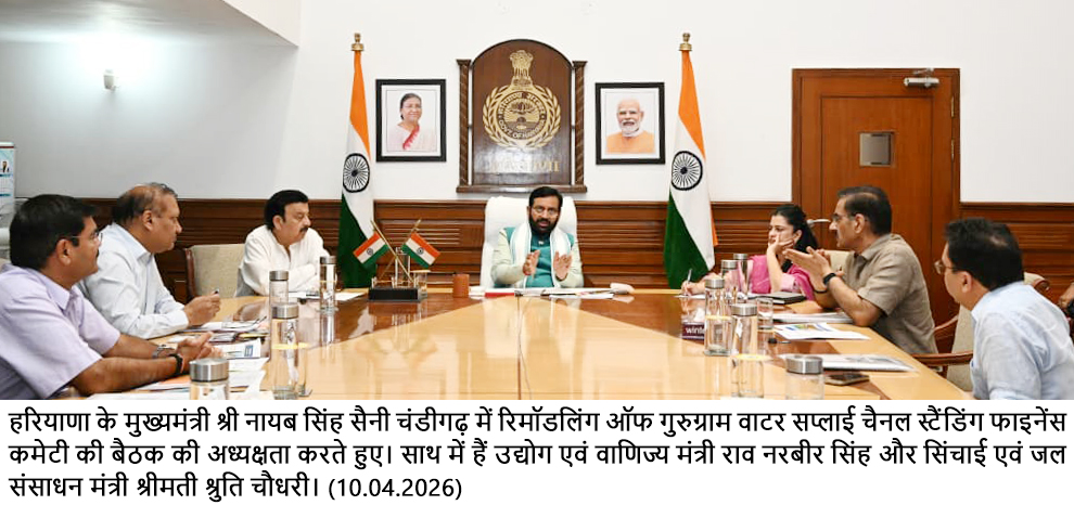चंडीगढ़, 10 अप्रैल – मुख्यमंत्री श्री नायब सिंह सैनी ने कहा कि गुरूग्राम में पेयजल सप्लाई के लिए बनाए जा रहे गुरूग्राम वाटर सप्लाई चैनल का कार्य तेज गति से पूरा किया जाए ताकि लोगों को निश्चित समय में पर्याप्त मात्रा में पेयजल सुलभ हो सके।