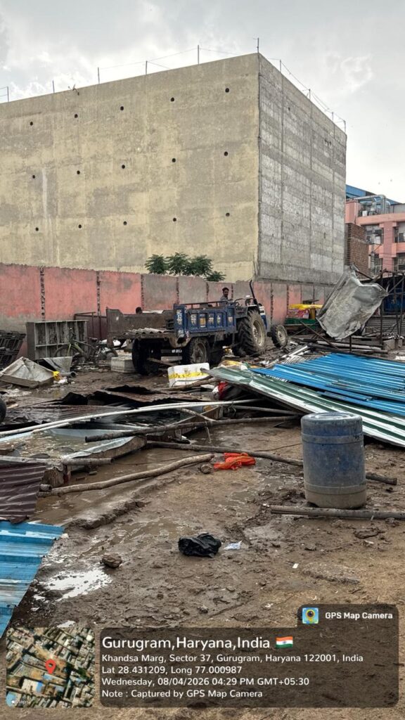 गुरुग्राम : 11 अप्रैल 2026 – जीरो टॉलरेंस नीति के तहत गुरुग्राम पुलिस ने भूमि माफियाओं और आदतन अपराधियों के खिलाफ सटीक एवं सशक्त अभियान चलाते हुए शहर में अवैध कब्जों,अवैध निर्माण के संगठित नेटवर्क पर करारा प्रहार किया जा रहा है। इसी कड़ी में पुख्ता खुफिया सूचना के आधार पर दिनांक 08.04.2026 को सैक्टर-37 स्थित जमीन पर अवैध रूप से मंडी लगाने,मीट मार्केट लगाने वालों की पहचान कर मशीनरी की सहायता से अवैध निर्माण को पूरी तरह ध्वस्त किया गया।