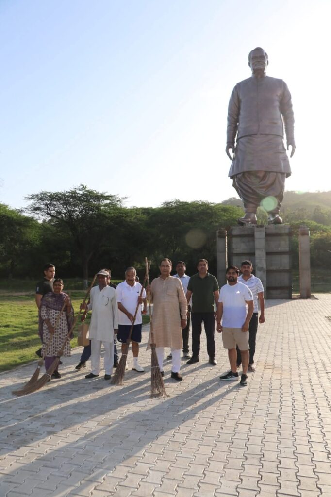 चंडीगढ़, 12 अप्रैल। भाजपा प्रदेश अध्यक्ष पंडित मोहन लाल बड़ौली ने रविवार को पंचकूला में भाजपा कार्यालय के बाहर सफाई अभियान चलाया। उन्होंने स्वच्छता अभियान के तहत स्वयं साफ-सफाई कर कार्यकर्ताओं को प्रेरित किया। उन्होंने कहा कि भारतीय जनता पार्टी द्वारा डा. अंबेडकर जयंती सप्ताह के अवसर पर विशेष स्वच्छता अभियान चलाया जाएगा। श्री बड़ौली ने डा. भीमराव अंबेडकर जयंती के अवसर पर आयोजित होने वाले कार्यक्रमों की जानकारी भी साझा की।