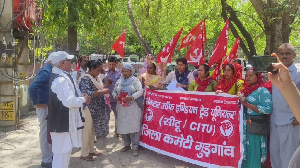गुरुग्राम, 13 अप्रैल 2026: न्यूनतम वेतन लागू करने की मांग को लेकर मानेसर में प्रदर्शन कर रहे मजदूरों पर पुलिस द्वारा किए गए लाठीचार्ज और 20 महिलाओं सहित 55 मजदूरों की गिरफ्तारी के विरोध में सीटू ने कड़ा रुख अपनाया है। सोमवार को गुरुग्राम में तहसीलदार के माध्यम से हरियाणा सरकार को मांग पत्र भेजकर घटना की निंदा की गई और गिरफ्तार मजदूरों की तत्काल रिहाई की मांग उठाई गई।