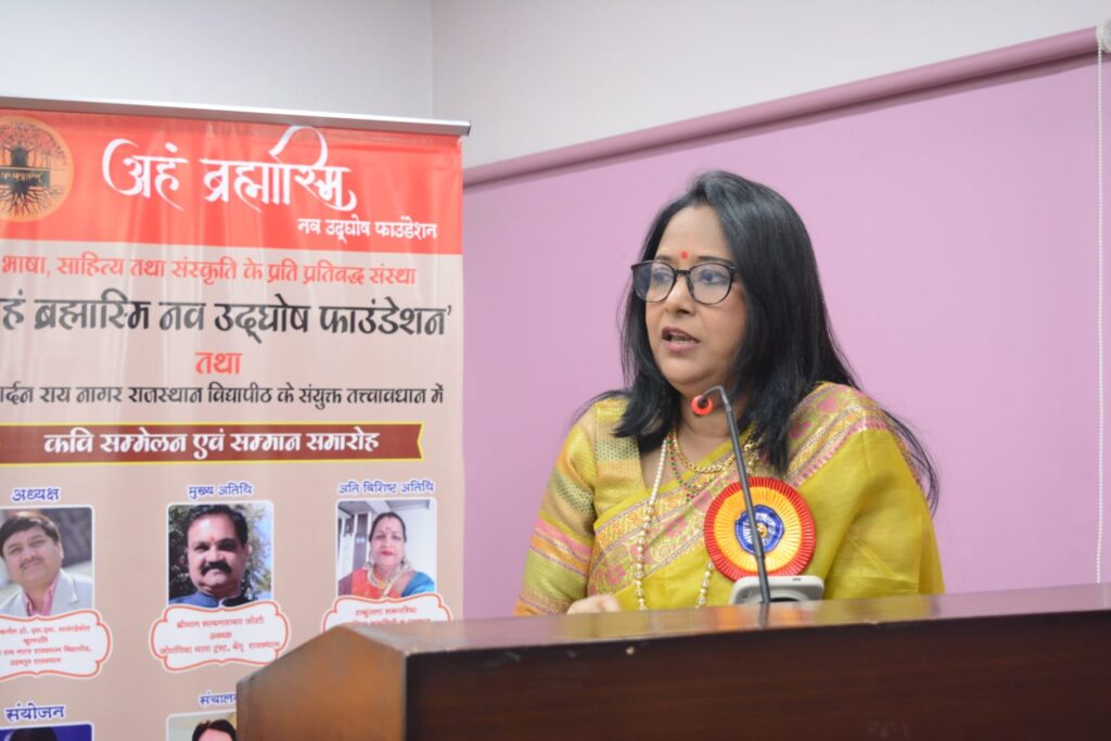 कार्यक्रम का शुभारंभ मां सरस्वती के समक्ष दीप प्रज्वलन व सरस्वती वंदना से हुआ। देश के विभिन्न हिस्सों—दिल्ली, गुरुग्राम, जयपुर, जोधपुर, चित्तौड़गढ़ और उदयपुर से आए कवि-कवयित्रियों ने अपनी रचनाओं से वातावरण को भाव-विभोर कर दिया। सभी अतिथियों और प्रतिभागियों को सम्मानित भी किया गया।