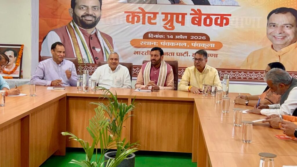 चंडीगढ़, 14 अप्रैल। भारतीय जनता पार्टी हरियाणा के प्रदेश कार्यालय ‘पंचकमल’ में मंगलवार को कोर ग्रुप की महत्वपूर्ण बैठक आयोजित की गई। बैठक में हरियाणा के मुख्यमंत्री नायब सिंह सैनी, भाजपा प्रदेश अध्यक्ष मोहन लाल बड़ौली, प्रदेश प्रभारी डॉ. सतीश पूनिया, राष्ट्रीय उपाध्यक्ष सौदान सिंह, राष्ट्रीय महासचिव ओम प्रकाश धनखड़, केंद्रीय संसदीय बोर्ड की सदस्य डा. सुधा यादव, केंद्रीय मंत्री कृष्णपाल गुर्जर, राज्यसभा सांसद सुभाष बराला, डा. कमल गुप्ता, कैप्टन अभिमन्यु, संगठनमंत्री फणीन्द्रनाथ शर्मा सहित कोर ग्रुप समिति के अन्य वरिष्ठ सदस्य उपस्थित रहे।