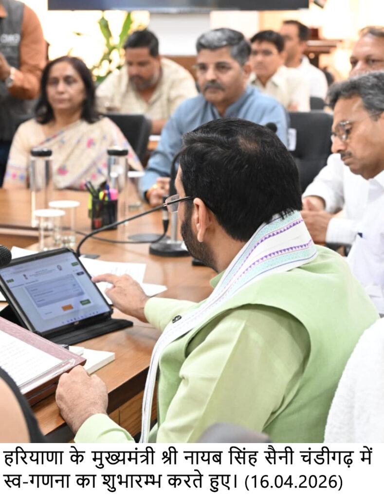 चंडीगढ़, 16 अप्रैल — हरियाणा के मुख्यमंत्री श्री नायब सिंह सैनी ने आज ऑनलाइन सेल्फ एन्यूमरेशन (Self Enumeration) फॉर्म भर कर राज्य में जनगणना 2027 की प्रक्रिया का विधिवत शुभारंभ किया। इस पहल के माध्यम से उन्होंने प्रदेशवासियों को जनगणना में सक्रिय भागीदारी करने का संदेश दिया।