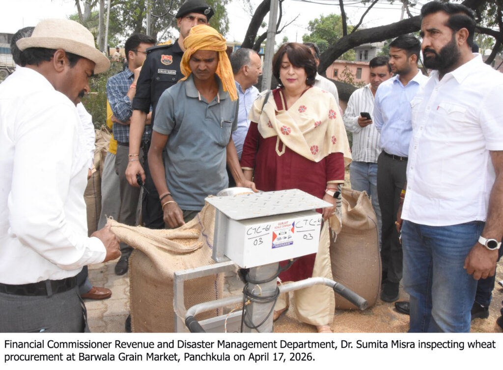 चंडीगढ़, 17 अप्रैल— हरियाणा के राजस्व एवं आपदा प्रबंधन विभाग की वित्तायुक्त डॉ. सुमिता मिश्रा ने आज रबी सीजन 2026–27 के तहत गेहूं खरीद और उठान (लिफ्टिंग) कार्यों की समीक्षा के लिए बरवाला अनाज मंडी का निरीक्षण किया। इस दौरान उन्होंने मंडी में किसानों और आढ़तियों के लिए उपलब्ध सुविधाओं का भी विस्तृत आकलन किया।
