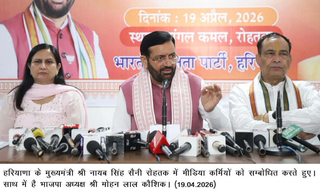 मुख्यमंत्री रविवार को रोहतक में प्रेस कॉन्फ्रेंस को सम्बोधित कर रहे थे। इस अवसर पर पश्चिम दिल्ली से सांसद कमलजीत सहरावत , भाजपा के प्रदेश अध्यक्ष श्री मोहन लाल कौशिक समेत अन्य गणमान्य नेता उपस्थित थे।