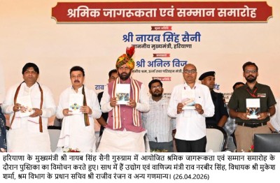मुख्यमंत्री रविवार को गुरुग्राम के सेक्टर-38 स्थित ताऊ देवीलाल स्टेडियम में आयोजित राज्य स्तरीय श्रमिक जागरूकता एवं सम्मान समारोह को संबोधित कर रहे थे। इस अवसर पर हरियाणा के उद्योग एवं वाणिज्य मंत्री राव नरबीर सिंह बतौर विशिष्ट अतिथि उपस्थित रहे।