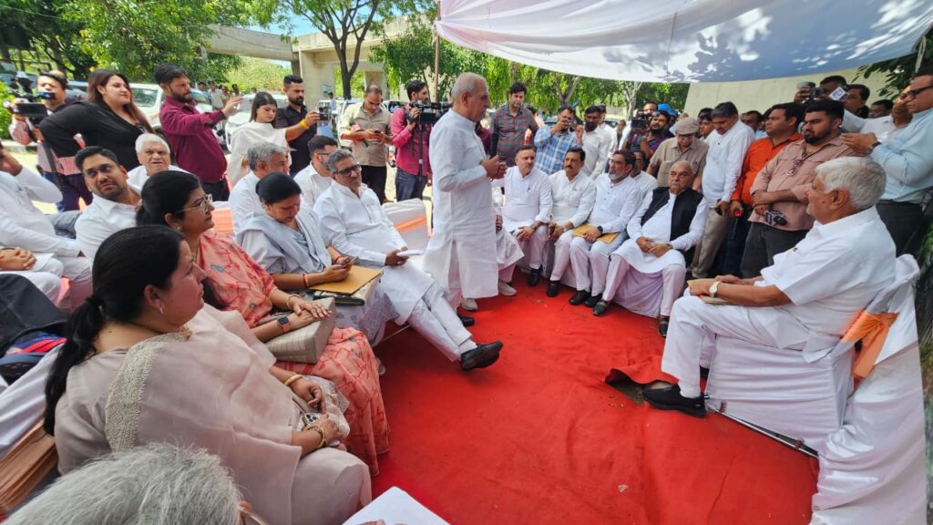 चंडीगढ़, 27 अप्रैल। कांग्रेस ने ऐतिहासिक फैसला लेते हुए हरियाणा सरकार द्वारा बुलाए गए विधानसभा के विशेष सत्र का बहिष्कार कर दिया और सदन के बाहर सामानांतर विधानसभा का आयोजन किया। पूर्व मुख्यमंत्री और नेता प्रतिपक्ष भूपेंद्र सिंह हुड्डा की अध्यक्षता में हुई विधायक दल की बैठक में पार्टी ने एकमत से यह फैसला लिया। कांग्रेस विधायकों ने कहा कि भाजपा सरकार संवैधानिक संस्थाओं का मजाक उड़ा रही है। महिला आरक्षण का मुद्दा केंद्र सरकार के अधिकार क्षेत्र का विषय है, राज्य सरकार का नहीं। इसलिए यह राज्य सरकार द्वारा यह सत्र बुलाना असंवैधानिक है तथा कांग्रेस विधायको ने जनता की गाडी कमाई का दुरुपयोग रोकने के लिए सत्र के दौरान विधायकों को मिलने वाले TA, DA लेने से भी इंकार कर दिया। हरियाणा के इतिहास में विधानसभा बायकॉट का इस प्रकार का फैसला पहली बार हुआ है.