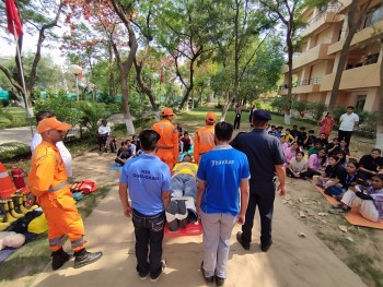 स्कूलों और कॉलेजों के स्वयंसेवकों को आपदा प्रबंधन, बचाव और प्राथमिक उपचार का दिया गया व्यावहारिक प्रशिक्षण