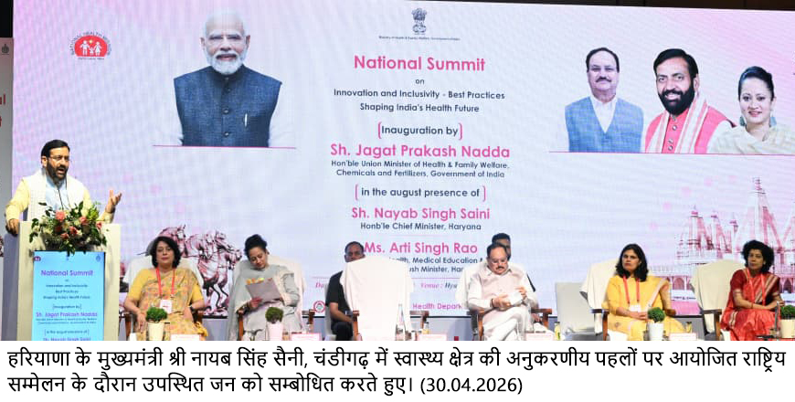 चंडीगढ़, 30 अप्रैल – हरियाणा के मुख्यमंत्री श्री नायब सिंह सैनी ने कहा कि ‘स्वस्थ हरियाणा ही विकसित हरियाणा की आधारशिला है।’ इसी लक्ष्य को ध्यान में रखते हुए राज्य सरकार प्रदेश में स्वास्थ्य सेवाओं के सुदृढ़ीकरण और विस्तार के लिए लगातार ठोस कदम उठा रही है। चालू वित्त वर्ष के बजट में स्वास्थ्य क्षेत्र के लिए पिछले वर्ष की तुलना में 32.89 प्रतिशत की उल्लेखनीय बढ़ोतरी करते हुए लगभग 14 हजार करोड़ रुपये का प्रावधान किया गया है। यह वृद्धि प्रदेश के नागरिकों को बेहतर और सुलभ स्वास्थ्य सुविधाएं उपलब्ध कराने की दिशा में सरकार की प्राथमिकता को दर्शाती है। जबकि वर्ष 2014 में प्रदेश का स्वास्थ्य बजट 2,646 करोड़ रुपये था, जिसे वर्ष 2025-26 में बढ़ाकर 10,500 करोड़ रुपये कर दिया गया। इस प्रकार पिछले वर्षों में स्वास्थ्य बजट में लगभग 298 प्रतिशत की अभूतपूर्व वृद्धि दर्ज की गई है।