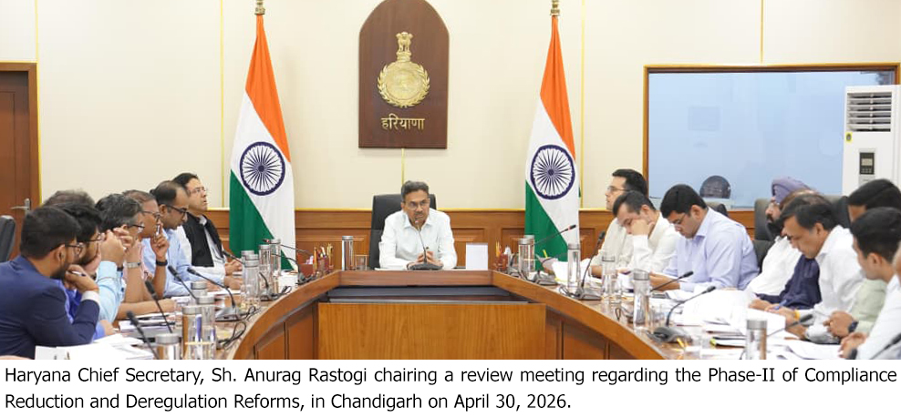 कैबिनेट सचिवालय के विशेष सचिव श्री के.के. पाठक और हरियाणा के मुख्य सचिव श्री अनुराग रस्तोगी की अध्यक्षता में यहां हुई एक उच्च स्तरीय बैठक में अनुपालन में कमी और डी-रेगुलेशन फेज-2 के अन्तर्गत हुए सुधारों की समीक्षा की गई।