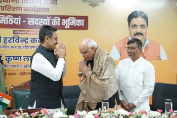 चंडीगढ़, 30 अप्रैल – हरियाणा विधान सभा की ओर से वीरवार को सेक्टर 3 स्थित हरियाणा निवास में विधायकों के लिए प्रशिक्षण कार्यशाला का आयोजन किया गया। हरियाणा विधान सभा अध्यक्ष हरविन्द्र कल्याण के सानिध्य में आयोजित इस कार्यशाला में विशेषज्ञों ने विधायकों को ‘संसदीय समितियां-सदस्यों की भूमिका’ विषय पर गहन प्रशिक्षण दिया।